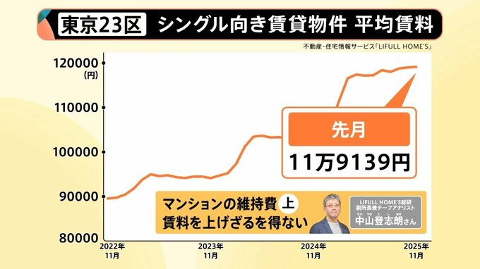 LIFULL HOME'S総研・副所長兼チーフアナリストの中山登志朗さんによると、「マンションの共用部分の光熱費や管理会社の人件費など、マンションの維持費が上がっているので、賃料も上げざるを得ない」ということです。