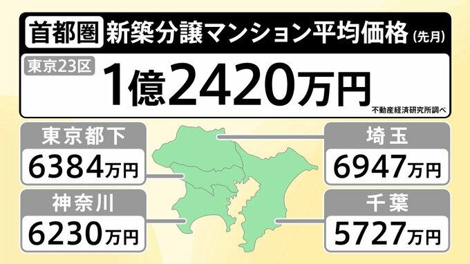 不動産経済研究所の調査によると、東京23区の11月の新築分譲マンションの平均価格は、1億2420万円だということです。