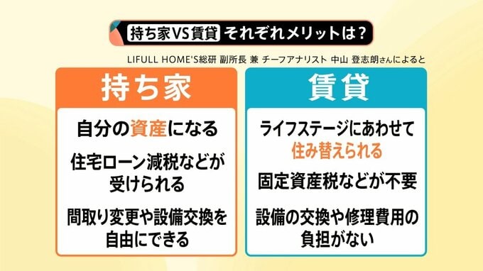 LIFULL HOME'S総研・副所長兼チーフアナリストの中山登志朗さんは、それぞれのメリットとして以下をあげています。