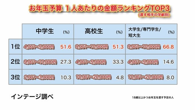 ■気になる年齢別のお年玉金額の平均TOP3は…あげる際の参考に