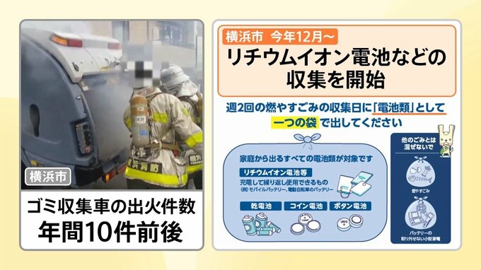 横浜市では、2025年12月からリチウムイオン電池などの収集を開始しました。「週2回の燃やすごみの収集日に『電池類』として一つの袋で出してください」としています。
