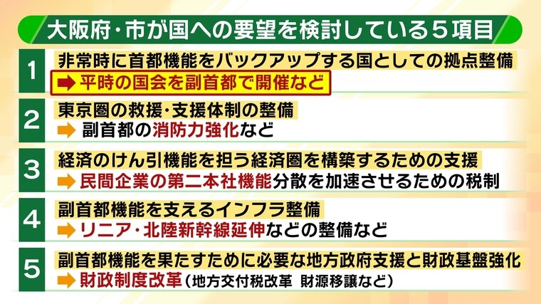 大阪府・市が国への要望を検討しているのは、以下の5項目です。