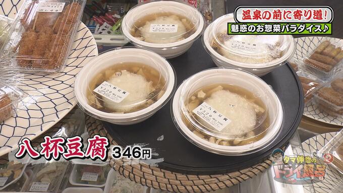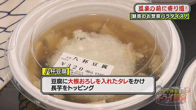 お惣菜を試食させてもらえることに。まずは【八杯豆腐】(346円)という豆腐料理を紹介してもらいました。豆腐に、大根おろしを入れたタレをかけ長芋をトッピングした惣菜です。