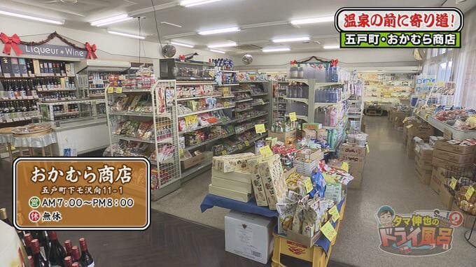 「今日ね、ちょっと行きたいとこあるわけよ」とタマ伸也さん。目的地の前に立ち寄ったのは『おかむら商店』という地元密着型のお店です。食品やお惣菜はもちろん、お酒、タバコなども購入できる昔ながらの商店です。