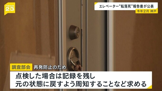今年2月、神戸市のビルで開いたままのエレベーターの扉から男性が転落死したとみられる事故で、国が報告書を公表しました。 今年2月、神戸市にあるビルのエレベーターの空間の底で、医師の田中翔さん(当時31…