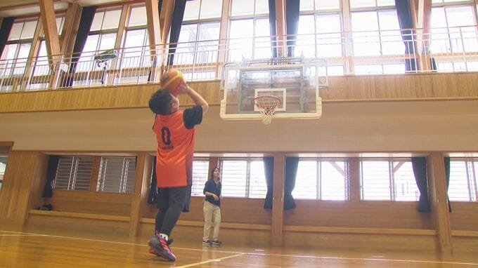 ゴール下の先生が手を叩き、“音”の方向へシュートを放ちます。