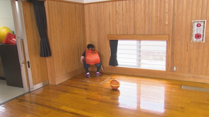 学校の休み時間には、先生と“音”を頼りにシュート練習も行っています。