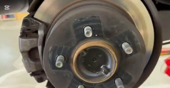 タイヤを外したハブの部分にわずかなサビを発見した伊藤さんは、「サビてるけど、大丈夫?」と不安そうな声を上げます。