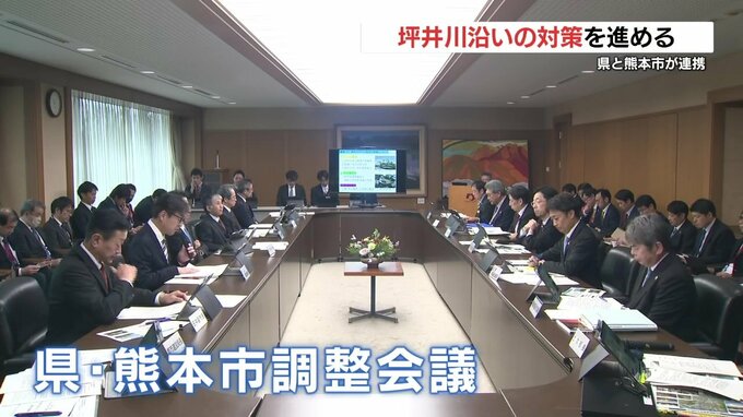 今回は、8月の大雨を踏まえた浸水対策などについて議論し、県が坪井川などに堆積した土砂の撤去や堤防のかさ上げを進め、熊本市が排水機場の主要設備を2階に移設するなどの対策を、分担して進めると確認しました。