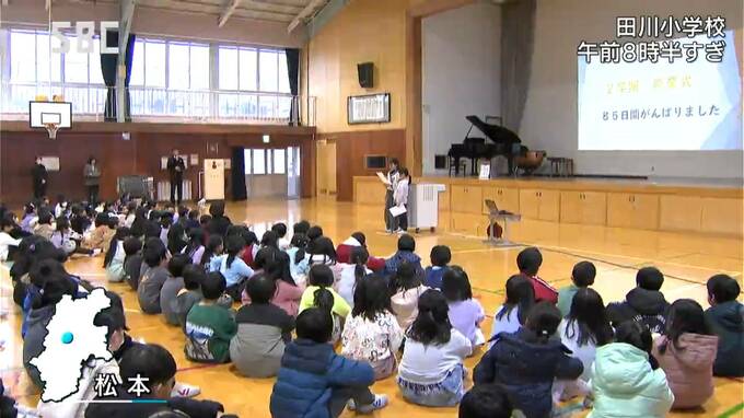 267人の児童が通う松本市の田川小学校では、けさ8時半から体育館で終業式が行われました。