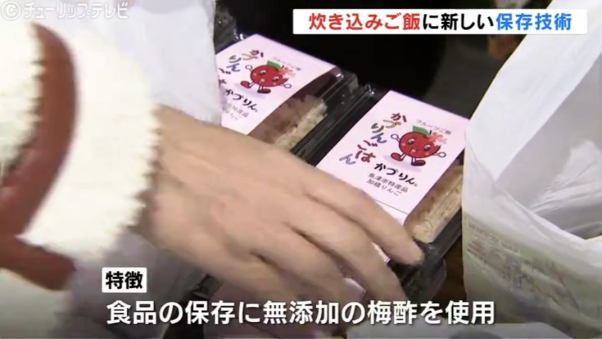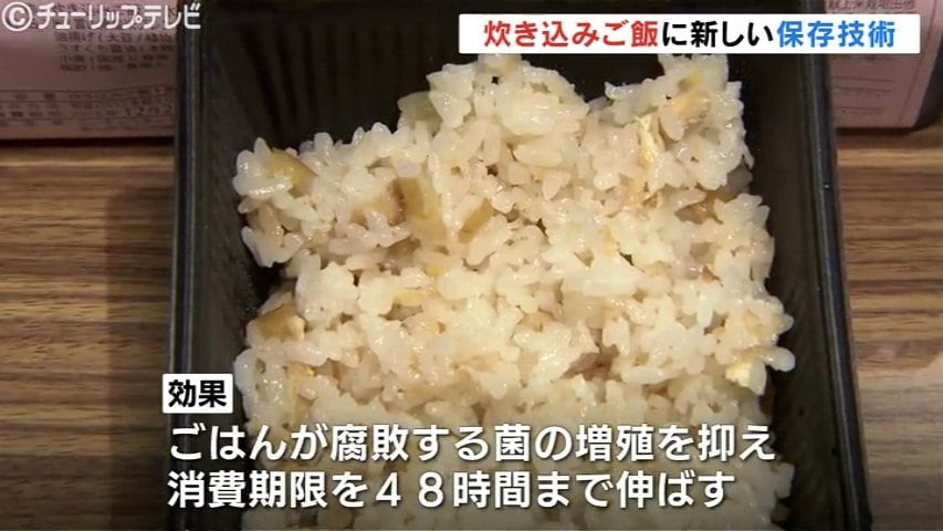 保存に食品添加物ではなく無添加の梅酢を使っているのが特徴で、ごはんが腐敗する原因となる菌の増殖を抑え、消費期限を通常の2倍の48時間まで伸ばすことができたということです。
