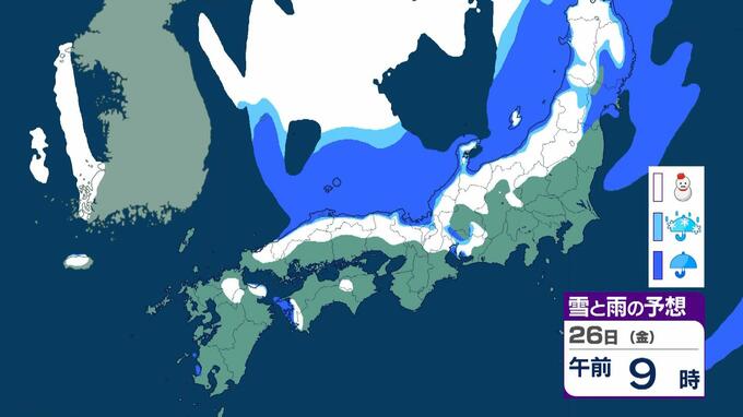 一方26日(金)の仕事納めの日から27日(土)にかけて上空に強い寒気が流れ込み、近畿北部を中心に雪が降り、山地だけではなく平野部でも雪が降る見込みです。中部や南部でも雪の舞う時間があり、まだ雪が観測されていない大阪や神戸でも、初雪の可能性があります。