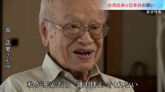 今年7月、慰霊碑完成の法要が営まれた。この日を誰よりも待ち望んでいた、台湾出身の元日本兵・呉正男さん(98)の姿もあった。
