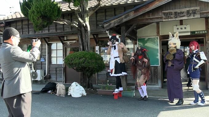 岡山県内外から集まったコスプレイヤーたち【画像⑤】。12月13日に開かれた、芸備線再構築協議会主催の実証事業、その名も「芸備線コスプレツアー」です。