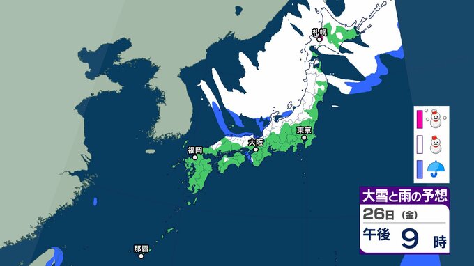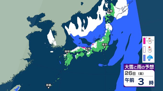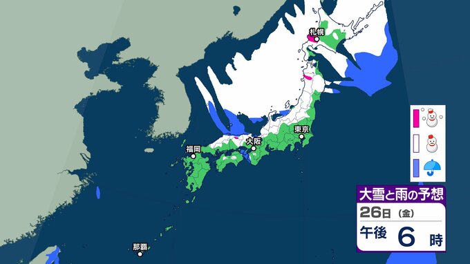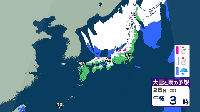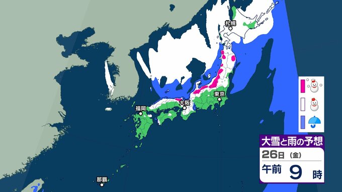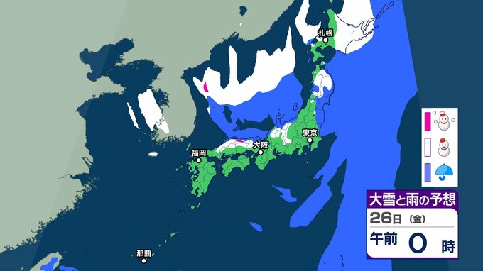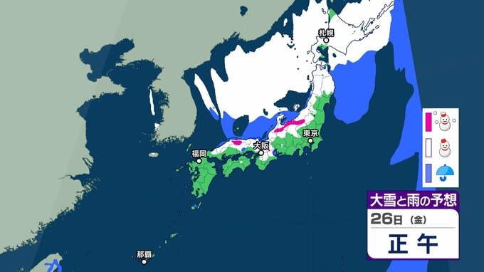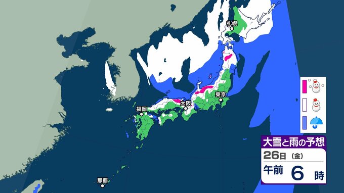 雪と雨の予想では、金曜日になると雪の範囲が広がる見通しです。