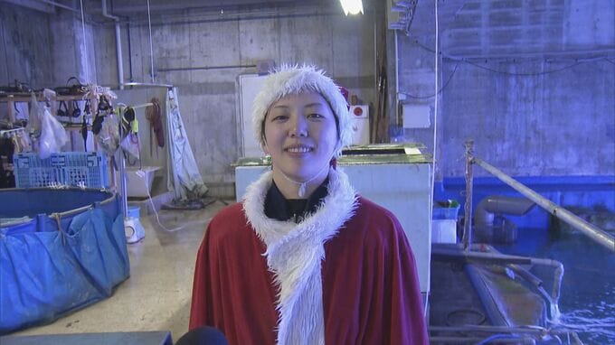水族館ならではのクリスマス気分を味わってもらおうと、毎年行われている恒例のイベントです。今回サンタダイバーに抜擢された古川さんは入社2年目です。