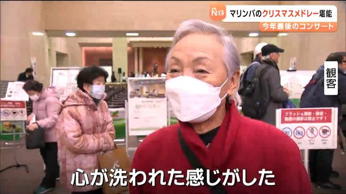 宮城県庁1階のロビーで開かれた恒例の「県民ロビーコンサート」では、仙台市出身のマリンバ奏者・加藤詢子さんらがクリスマスメドレーや有名なクラシック曲など7曲を披露しました。訪れた約350人は、マリンバのぬくもりのある優しい音色に聞き入っている様子でした。