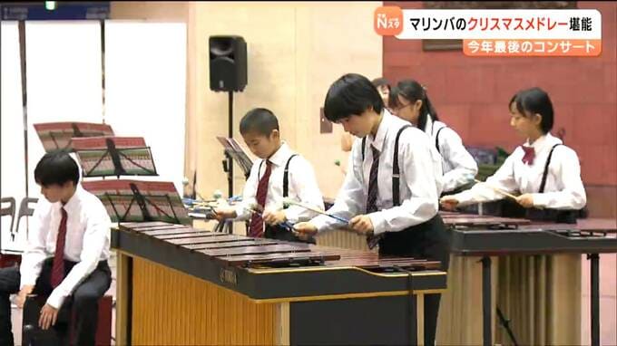 24日は加藤さんのマリンバ教室に通う小中学生のステージもありました。2025年の県民ロビーコンサートは今回が最後で、次回は1月28日に開かれる予定です。