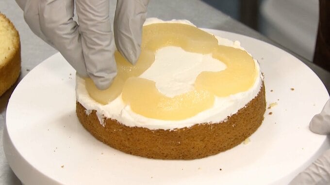 この1~2年でイチゴの価格が3割ほど高騰したため、価格が3分の1程度の洋ナシのシロップ漬けに変更しました。