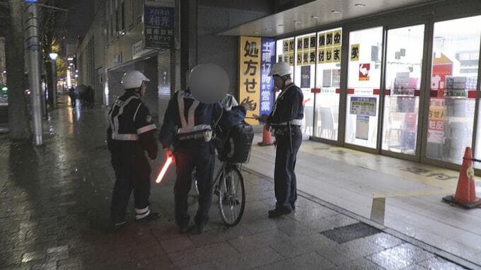 「午後11時です。自転車の飲酒運転の取り締まりが行われています」