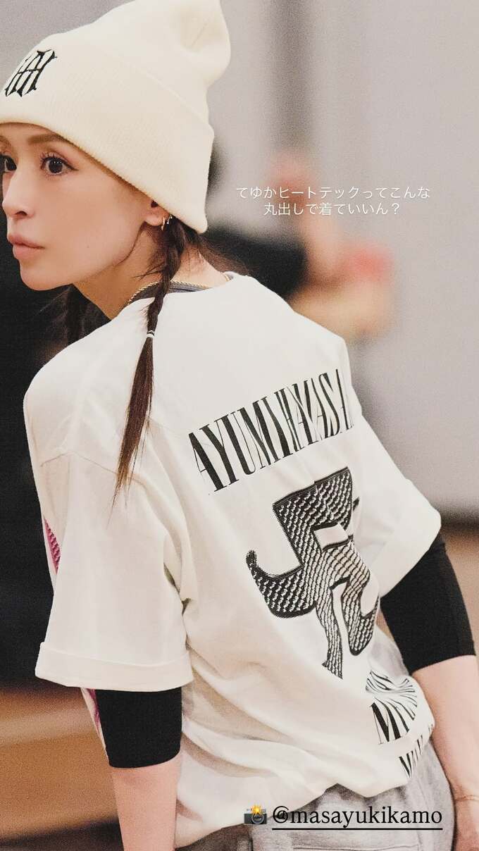 さらに浜崎さんは、その衣装でスタジオリハーサルでの姿を投稿。オーバーサイズぎみなTシャツの袖からは保温インナーの袖が肘から先を覆っているのが覗いていて「ヒートテックってこんな丸出しで着ていいん?」と自問。「全然全然だいじょーぶ」「出して着るのあり派」など同意のコメントも寄せられています。