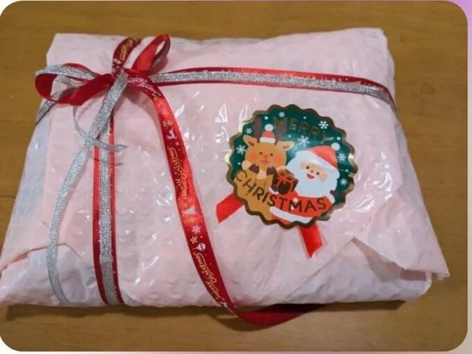緩衝材のプチプチもハート形を選び、包装紙も百均でいろいろ買って、サンタさんの紙袋も用意。