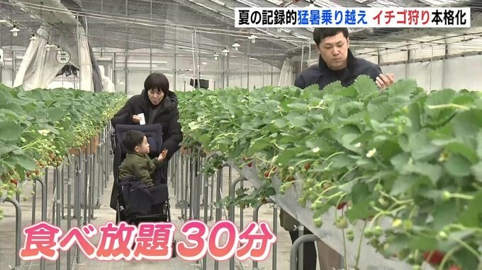 夏の記録的な暑さを乗り越えたイチゴが旬を迎え広島県廿日市市にある農園ではクリスマス前に、イチゴ狩りが始まりました。