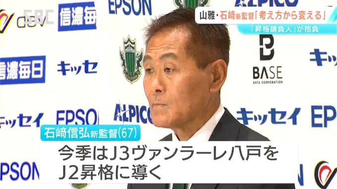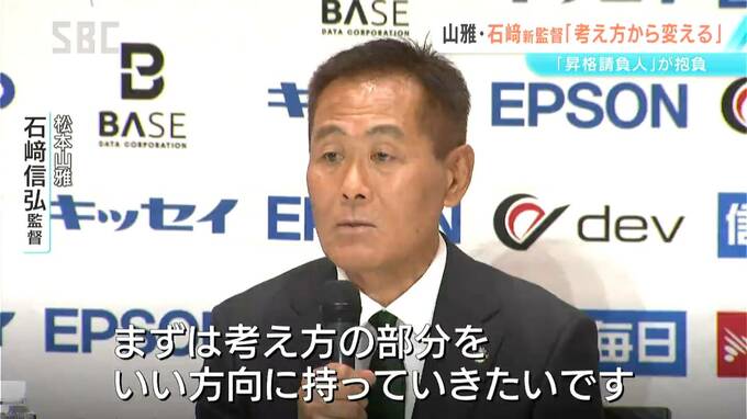 サッカーJ3・松本山雅の石﨑信弘監督が就任会見し「考え方から変えていきたい」と決意を語りました。
