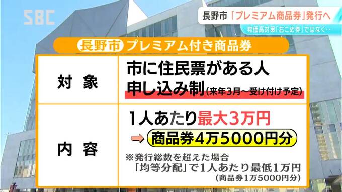 長野市は物価高対策として国の交付金を活用し「プレミアム商品券」を発行することを決めました。