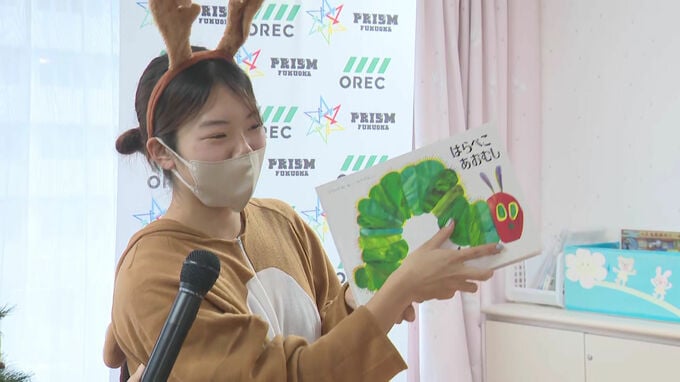 その後は、音楽に合わせて絵本の読み聞かせをしたほか、クリスマスプレゼントとして一人一人に絵本やTシャツを手渡しました。