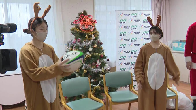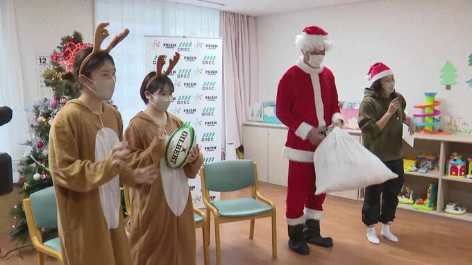 サンタクロースとトナカイの姿で久留米大学病院の小児科病棟を訪れたのは、福岡県を拠点に活動する女子ラグビーチーム、ナナイロプリズム福岡の選手たちです。