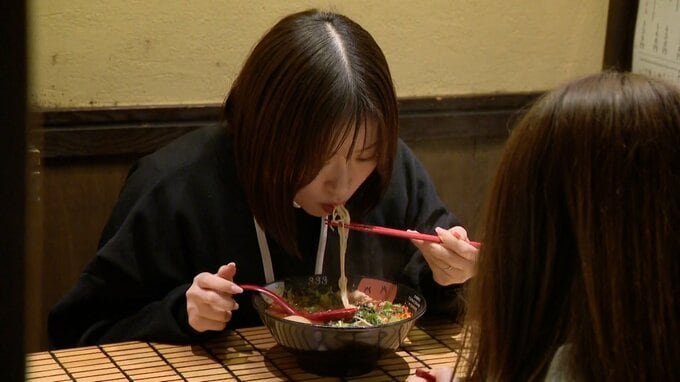 「福岡市内のラーメン店です。クリスマスに合わせて無料でラーメンが提供されるということでこのように長い行列ができています」