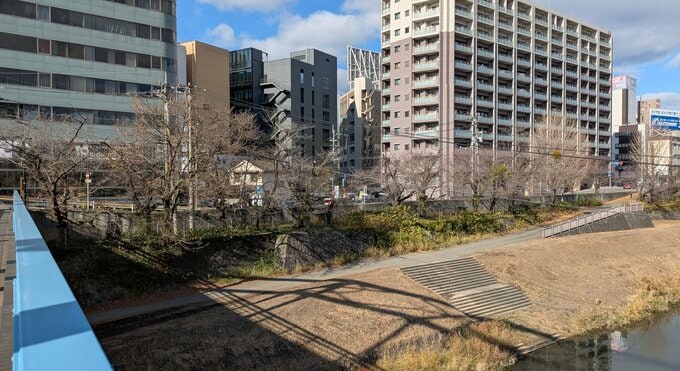 そして電車通りの南側にあったのが「声取坂町(こえとりざかまち)」。この付近の白川は瀬の音が大きく、大きな声を出さないと会話できないような場所だったそうです。そのため、白川に下りる坂道で寒い時期に「寒声を取る」と称して大声で詩吟や謡曲の練習をする人が多かったことから、ここを「声取坂」と呼ぶようになりました。