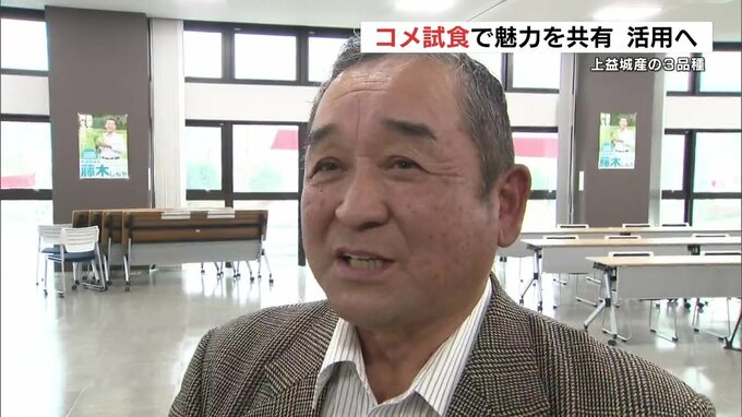 これは、コメを取り巻く状況について生産者と自治体が共有して普及拡大につなげようと、JAかみましきが初めて開いた試食会です。