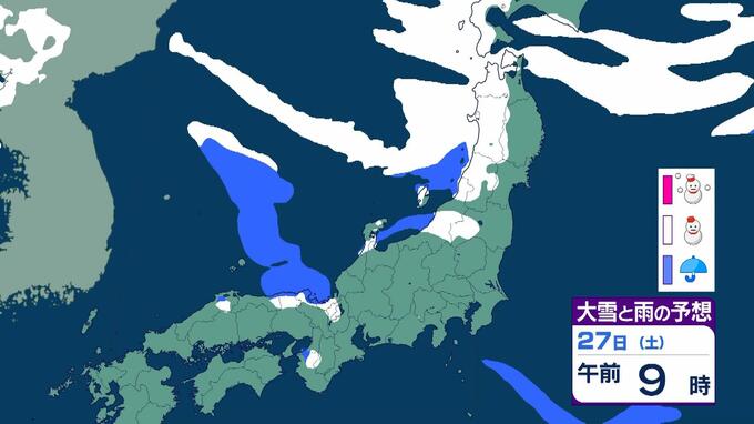 クリスマスが終われば大雪に?26日にかけて近畿地方で最大「50センチ」予想 普段雪の少ない中部や南部でも山地を中心に積雪の可能性【雪と雨の最新シミュレーション】 毎日放送 2025年12月24日(水) 18:47 国内 27日(土)の雪と雨のシミュレーション 【画像を見る】いちばん雪が降るのはいつ?◆25日◆26日◆27日◆28日◆29日