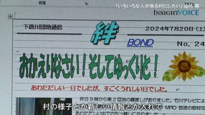 能登半島地震から半年、加代さんが始めた活動があります。震災から復興に向けて変わりゆく故郷の様子を地区に残る住民、離れた住民にも伝える「下唐川団地通信」の発行です。