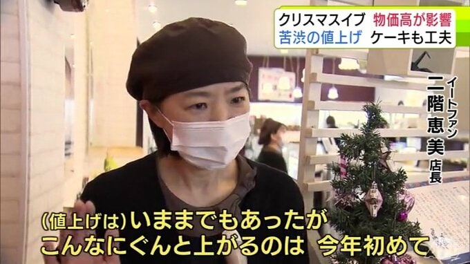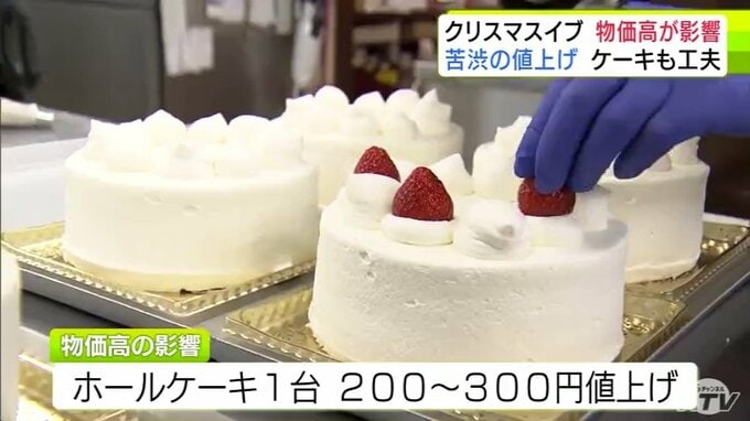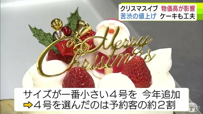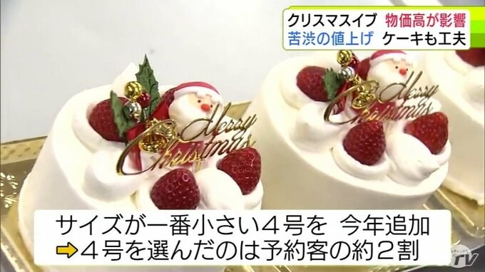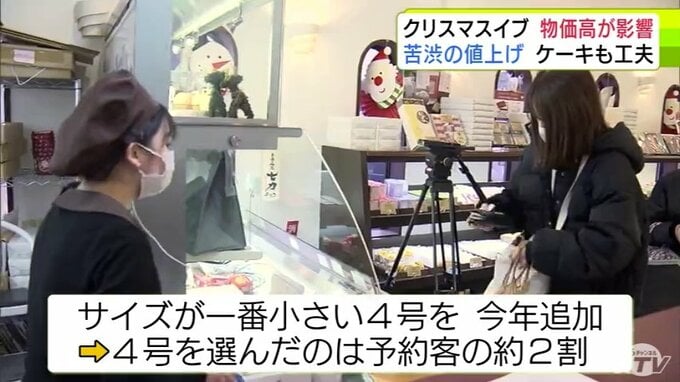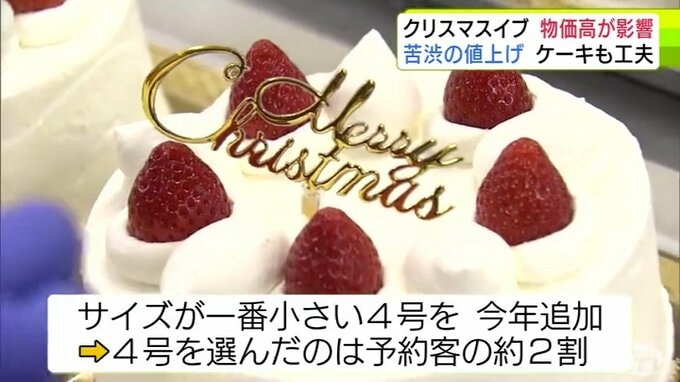「こんなにぐんと上がるのは今年初めて」クリスマスイブで1年でもっとも忙しい菓子店に『物価高』の影響が… ホールケーキ1台につき200~300円値上げ 予約した人の約2割は一番小さい4号サイズを選ぶ 3時間前