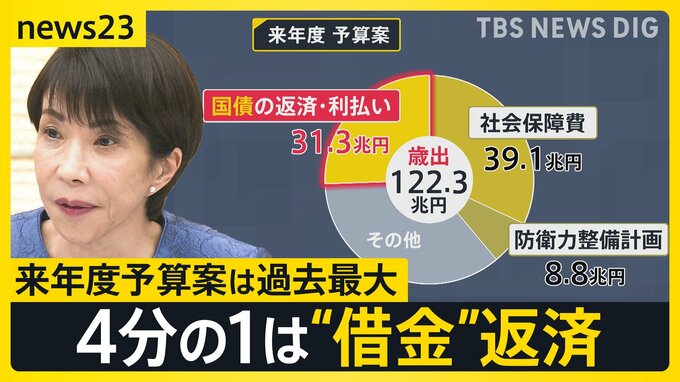 政府は来年度予算案を、過去最大となる122.3兆円程度とする方針を固めました。国債の発行額はさらに膨らむことになり、“借金”頼みの財政に懸念も広がっています。花火が夜空を彩ります。横浜市のクリスマスマー…