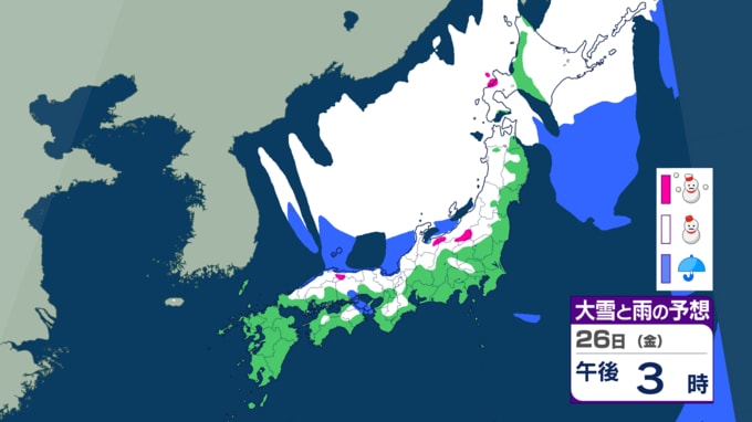 25日午前6時~26日午前6時までの24時間予想降雪量は多い所で、
