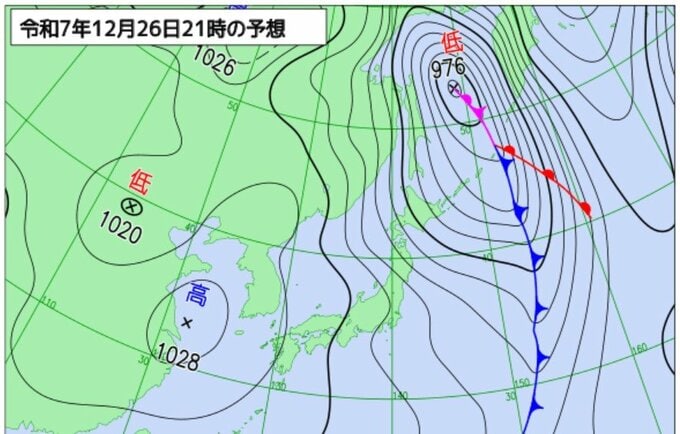 北陸地方では、26日未明から朝にかけて暴風に警戒し、26日は高波に警戒してください。また、26日朝から夜遅くにかけて大雪による交通障害に注意・警戒してください。