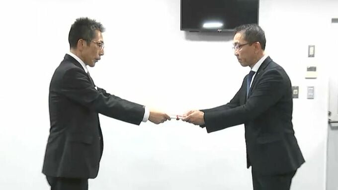 贈呈式では、RSK山陽放送の德川専務から、岡山県子ども・福祉部の中村部長に目録が手渡されました。