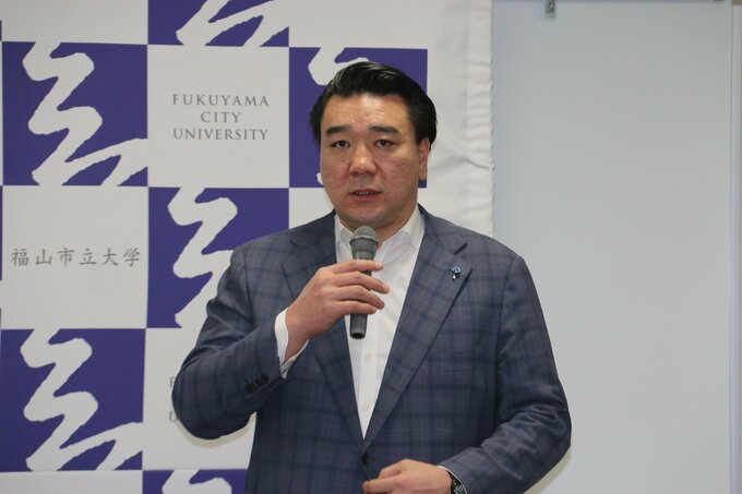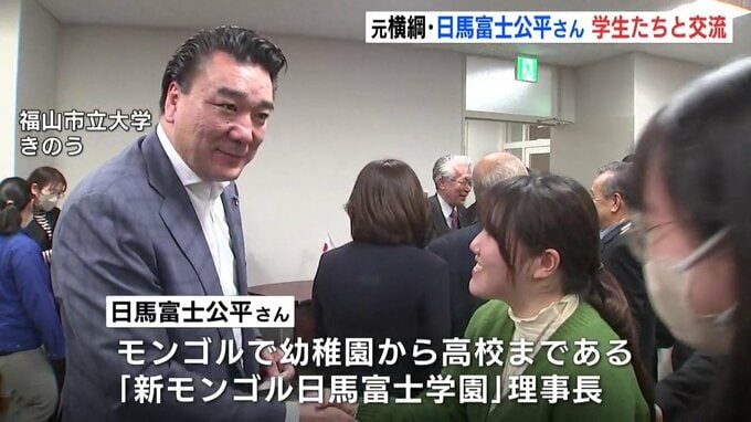 大相撲元横綱の日馬富士公平さんが24日、広島県福山市にある福山市立大学を訪れ、学生たちと交流しました。