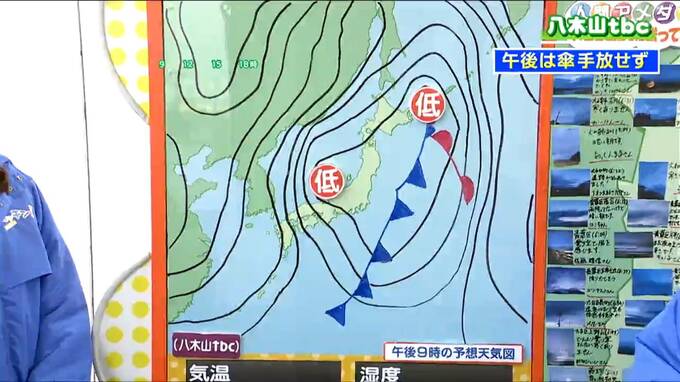24日に雨を降らせた前線や低気圧は北海道の東の方に離れていきますが、25日は別の低気圧が日本海で発生し、急速に発達しながら近づいてきます。このため、この後県内全域で雨雲がかかってきて、特に午後は長い時間にわたって各地で雨となる見込みです。傘を忘れずにお持ちください。
