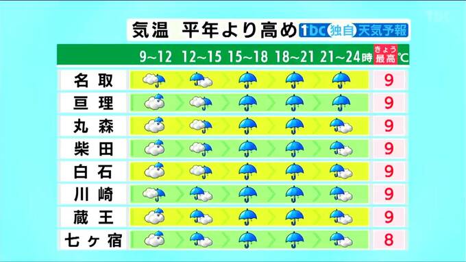 ■白石:最高気温9℃ ■川崎:最高気温9℃