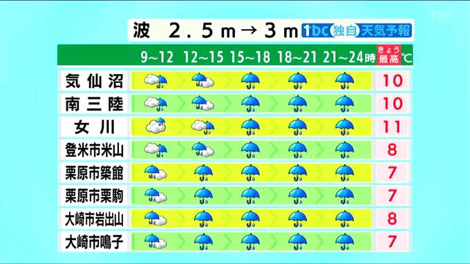 ■女川:最高気温11℃ ■登米市米山:最高気温8℃