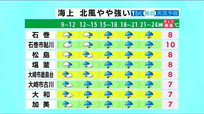 ■石巻:最高気温8℃ ■石巻市鮎川:最高気温10℃