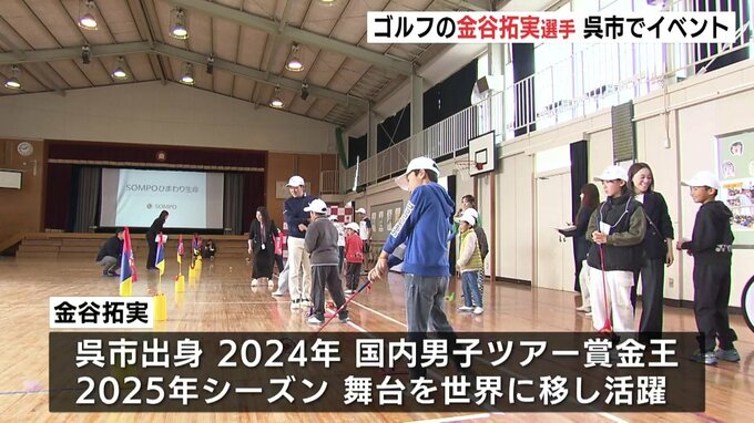 子どもたちにゴルフの楽しさを伝えようと、プロゴルファーの金谷拓実選手が呉市の母校でイベントを行いました。
