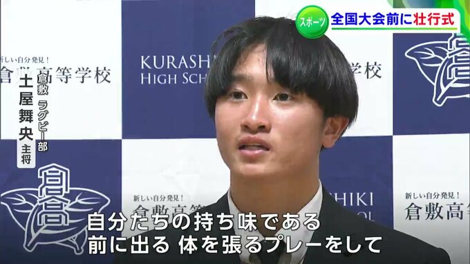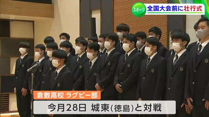 壮行式では福田耕士校長が「チーム一丸となって熱き青春のトライを決めてください」と選手たちに激励の言葉を贈りました。倉敷は今月28日に初戦で徳島県代表の城東と対戦します。
