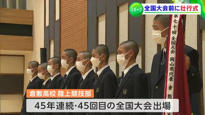 ラグビーと駅伝の全国大会に出場する倉敷高校で壮行式が開かれました。選手たちは県の代表として大会での健闘を誓いました。