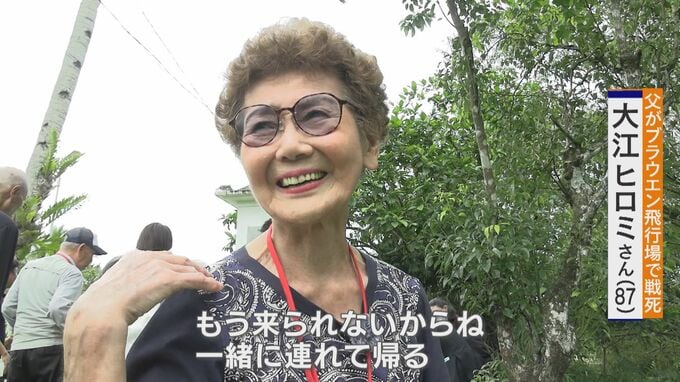 戦後80年が経ち遺族の高齢化が進む中、現地訪問はことしで最後となりました。飛行場跡の慰霊碑の前で、追悼文を読み上げる大江さん。